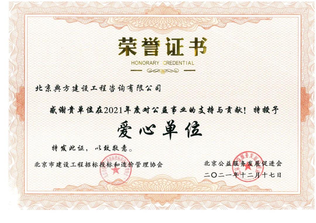本次榮獲“愛(ài)心單位”證書(shū),是由北京市建設(shè)工程招標(biāo)投標(biāo)和造價(jià)管理協(xié)會(huì)和北京公益服務(wù)發(fā)展促進(jìn)會(huì)共同頒發(fā)的,2021年“鄉(xiāng)村教育振興公益幫扶計(jì)劃”公益捐款活動(dòng)。活動(dòng)目的是為貫徹《中共中央國(guó)務(wù)院辦公廳關(guān)于推進(jìn)社會(huì)公益事業(yè)建設(shè)領(lǐng)域政府信息公開(kāi)的意見(jiàn)》精神,充分發(fā)揮行業(yè)引領(lǐng)與帶動(dòng)作用,加強(qiáng)愛(ài)心單位隊(duì)伍建設(shè)。